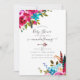 Boho chic rose chaud et bleu turquoise aquarelle bouquets floraux baby shower invitation avec élégante typographie manuscrite.