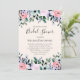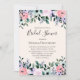 Invitation de douche nuptiale avec un joli design floral fait d'aquarelles. Fleurs de jardin roses, violettes et vertes.