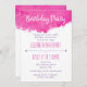 Une invitation à la fête d'anniversaire design et tendance. Un design féminin mignon avec un éclat de peinture d'aquarelle rose vif.