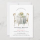 Belle invitation brunch d'anniversaire avec une aquarelle illustration d'une table et de chaises chic. Le texte de l'événement est modifiable et peut être changé en "déjeuner d'anniversaire" ou une autre occasion. L'envers est un arrière - plan d'aquarelle abstrait dans les tons roses.