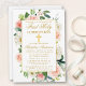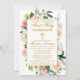 Aquarelle moderne Elégante Rose Blanc Floral First Holy Communion Invitation comprend roses roses, fleurs blanches, feuilles d'eucalyptus et autres beaux feuillage botanique. Croix d'or.