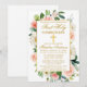 Invitation Aquarelle rose Roses Fleurs Or Première Communion