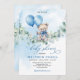 Invitation Aquarelle Teddy Bear Bleu et Baby shower de ballon