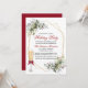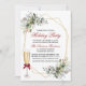 Elégante aquarelle verdure Fête Invitation inclut belle aquarelle botanique verdure, eucalyptus feuilles, baies sèches et autres beaux feuillages. Cadre géométrique Or. Script rouge. Verre de champagne avec Bow rouge.