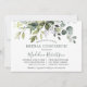 Moderne Elegant Aquarelle Botanique Verdure Fête des mariées Luncheon Invitation Card comprend des feuilles d'eucalyptus, vert feuillage botanique, feuilles bleu poussiéreux et d'autres belles verdure botanique. Script de calligraphie branché. Sage Green Back.