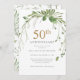 Invitation Aquarelle Vert Doré 50e Anniversaire Botanique, Moderne, Élégante