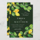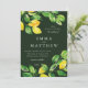 Cette suite de collection de faire-part de mariage est magnifiquement conçue avec des illustrations aquarelles de citrons frais et de feuilles dans un arrière - plan vert foncé. Les couleurs mélangées de l'aquarelle créent un cadre paisible et élégant pour la suite design. Les polices utilisées pour le texte sont élégantes et raffinées, ajoutant une touche de sophistication à la conception. Le design citron et feuille saisit parfaitement l'essence d'un mariage d'été sur la côte méditerranéenne, tandis que les fontes élégantes augmentent l'esthétique globale de la suite.