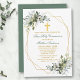 Elégante aquarelle verdure Première communion L'invitation comprend des feuilles d'eucalyptus aquarelle et d'autres beaux feuillages botaniques. Croix d'or. Sage Green Back.
