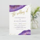 Ces invitations de mariage élégantes et modernes présentent des pierres de géode violet d'aquarelle, avec une typographie et des éclaboussures d'or.