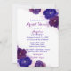 Élégantes invitations à la douche nuptiale avec arrière - plan floral aquarelle en prune, bordeaux, violet, violet et aubergine avec schéma de couleurs bleu. Parfait pour les mariages automne / automne. Modèles invitations modifiables. Toutes les polices de texte, taille et couleur peuvent être modifiées. Contactez le concepteur pour les demandes spéciales.