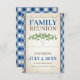 Cette amusante réunion de famille sauf l'invitation date est ornée d'un pique-nique bleu à damiers nappe design avec un arbre vert parc. Les détails de votre barbecue sont mis en gras sans police en bleu et marron. La conception papier vintage est reportée à l'arrière de votre faire-part de sortie en famille. Parfait pour votre fête d'été, jardin barbecue, cuisine, réunion de famille ou tout ce que vous voulez. Il s'agit d'un design unique de haute qualité. Pour voir plus d'invitations en vichy visitez VG Invitations à www.zazzle.com/vginvites Victoria est un concepteur d'invitations professionnel situé à Jupiter, FL près de West Palm Beach.