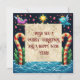 Plongez dans l'émerveillement festif avec ce design de Noël psychédélique, avec un soleil et une lune sereins, un saint vibrant, des sucres de canne, et une créature chérubic dans une hallucination sauvage de couleur et de fantaisie.