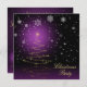 Illustration de Noël luisante et enneigée avec un arbre de Noël brillant et des flocons de neige sur un arrière - plan violet.
