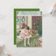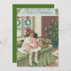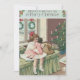Il est temps de fêter les fêtes. Cette impression vintage de Noël représente le matin de Noël d'une petite fille. Il comprend un arbre de Noël, une couronne, une poupée et d'autres cadeaux.
