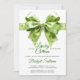 Chance chanceuse arête verte sauge avec trèfle vert St. Patrick's Day baby shower irlandais Invitation pour les filles. Célébrez l'arrivée prochaine de votre petit charme chanceux avec cette adorable invitation à baby shower sur le thème de la Saint Patrick ! Un élégant arc de coquette vert sauge, décoré de trèfle vert vif, ajoute une touche de fantaisie irlandaise. L'invitation annonce joyeusement "Un peu de Lucky Charm est sur le chemin", en utilisant des shamrocks pour remplacer deux lettres et mettre une humeur joyeuse. Le dos est doté d'un fond vert sauge solide, complétant le look cohésif et élégant de l'invitation.