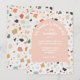 Faire-part de mariage avec motif terrazzo et arche rose pêche clair. Caractéristiques d'un grand terrazzo aux couleurs de terre cuite, roses, orange, bleus, beiges et crème. Idéal pour un mariage décontracté rétro moderne. Tout le texte peut être modifié pour une soirée de répétition, une douche de mariée, une fête de fiançailles, etc. Pour apporter plus de modifications, accédez à Personnaliser ce modèle. En bas, vous verrez « Voulez-vous personnaliser davantage ce design ? Cliquez sur le bouton MODIFIER en utilisant l'outil de conception. À partir de là, vous pouvez modifier certaines polices et certaines couleurs, déplacer des éléments ou supprimer ce dont vous avez besoin.