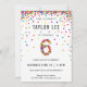 Arc-en-ciel 6e anniversaire / 6e anniversaire invitations de fête! Avec les détails de la fête de votre enfant et un "6" en confetti, avec des cercles amusants de confettis couleur arc-en-ciel qui saupoudrent du haut de ces mignons invitations