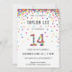 Arc-en-ciel 14 ans anniversaire / 14e anniversaire invitations de fête! Avec les détails de votre fête de garçon ou de fille de 14 ans et un "14" en confetti, avec des cercles amusants de confettis couleur arc-en-ciel qui saupoudrent du sommet de ces mignons invitations