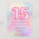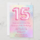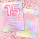 Pink Rainbow Invitation 15th Birthday Girly Pink Parties scintillant anniversaire invitation pour une fille de 15 ans avec écriture de script moderne et des ballons de papier amusant.