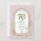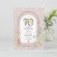 Rejoignez-nous pour une célébration fantaisiste des 70 ans de notre client ! Notre invitation botanique élégante présente un fond rose poussiéreux charmant parsemé de délicats points blancs. Ornée d'une arche aquarelle charmante, mettant en vedette des florales printanières et estivales vibrantes, et ornée de créatures sauvages délicieuses comme des papillons voltigeants et des coccinelles délicates. Personnalisez le modèle modifiable avec vos propres détails d'événement pour un effet personnalisé. Parfait pour nos amis jardiniers qui apprécient l'art de la poterie !