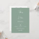 Cette élégante invitation de mariage présente un design minimaliste accompagné d'une belle écriture de script et d'une photo d'arc et d'une date avec un arrière - plan vert sage. De plus, vous pouvez ajouter un code QR au dos pour diriger vos invités vers RSVP votre événement mariage. Vous pouvez customiser l'invitation avec votre photo et votre code QR — il suffit de le remplacer au dos par le vôtre dans la case "personnaliser ce modèle". Si vous devez modifier la couleur, vous pouvez customiser la carte d'invitation. Vous pouvez customiser et personnaliser l'invitation afin de répondre à vos besoins mariages et cliquez simplement sur personnaliser de l'invitation. Vous pouvez facilement personnaliser cette invitation avec votre propre texte et la partager avec vos invités numériquement - que ce soit par le texte, par e-mail, ou par les médias sociaux. Si vous préférez, vous avez également la possibilité de poster une version imprimée à vos invités. Ou, vous pouvez faire les deux : envoyer une version numérique et le suivi avec une copie imprimée pour une touche personnelle!