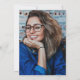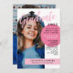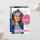 Invitation de la fête de remise de diplômes rétro personnalisée avec une photo en arc sur la couverture et une deuxième photo couvrant le dos. Diplômé écrit en pinceau rose à travers l'invitation de graduation. Couleurs d'accent rose pâle et rose. Invitation de graduation élégante et féminine en rose, blanc et noir.