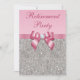 Les invitations girly roses faites sur commande élégantes de partie de retraite des femmes avec de beaux bijoux scintillants de paillettes d'une image imprimée d'argent, motif de gemmes, rose brillant mignon ont imprimé des arcs et des images de rubans et des diamants assez numériques, fausses pierres bling les bijoux et le texte rose. Notez svp : Tous les invitations sur Zazzle ont des images imprimées d'appartement. Ces invitations chics, fascinants, élégants, sophistiqués pour des parties de retraite sont décorés les deux côtés. Beau, chic, à la mode, moderne, tape-à-l'oeil et invitations fascinantes pour des retraites pour elle. Jolis invitations de charme pour la partie de retraite d'une femme. Le texte, la police et la couleur de la police peuvent tout être customisés. Si vous avez besoin d'aide customisant votre produit svp contactez-moi par mon magasin. Je serai heureux d'aider.