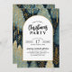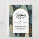 Invitation vos invités à célébrer la saison de Noël avec cette élégante invitation de fête de vacances avec typographie moderne, une arche blanche avec une bordure en or sur un arrière - plan des arbres de Noël de vacances et de la verdure avec des accents de feuille d'or.