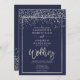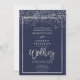 Invitation Argent confetti marine bleu script d'hiver mariage