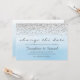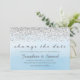 Changez le faire-part de date avec le faux design de parties scintillant argent et l'arrière - plan d'aquarelle bleu pastel ombre.