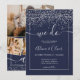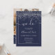 Confetti en faux argent moderne, mariage d'initiales de script de cadre géométrique, ajoutez 4 de votre photo de couple préférée, un faire-part de mariage simple, minimaliste et chic, ajoutez vos initiales à l'arrière. La couleur bleu marine est entièrement modifiable.