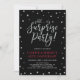 Célébrez votre jour spécial avec ce modèle d'invitation de fête moderne et élégant. Ce design présente des confettis argentés brillants avec un thème de couleur noir et rubis.