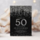 Elégant rideau à cordes et parties scintillant sur l'invitation noire 50e anniversaire mariage.