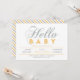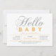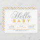 Célébrez une journée spéciale pour votre bien-aimé avec cette invitation baby shower moderne! Ce design présente une typographie simple mais élégante "Hello Baby" en parties scintillant argentée. Ce design d'invitation baby shower est parfait pour une soirée à thème couleur argent et jaune.