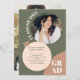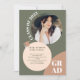 Faites le tour et fêtez ! Nos invitations de boho élégantes et modernes sont la meilleure façon d'annoncer votre graduation dans le style Avec une police audacieuse avec des formes rétro vert, brun et blush et des formes de cercle, ajoutez 5 de vos photos préférées. invitation votre invité à votre maison ouverte et annoncer votre graduation dans le style.