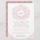 Art botanique de feuille croissante dessinée à la main rose poussiéreuse rose après le mariage, invitations de réception de mariage. Conception de feuille simple encerclant la conception de vos propres initiales de monogramme. Dans de jolies nuances de rose blush et de gris sur blanc. Autres couleurs et articles assortis disponibles. © Dessin et conception de feuille originale par Sarah Trett pour www.mylittleedenweddings.com sur zazzle.