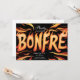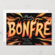 Une illustration numérique d'une invitation de fête de fin d'études de flammes de feu de joie Un design d'art de mots enflammés représentant le mot feu de joie en lettres orange gras entouré de flammes.