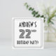 La façade de ce style élégant des années 1920-1930 a inspiré la conception de la carte d'invitation à l'anniversaire de vingt-deuxième anniversaire et présente un nom modifiable, un look art déco fantaisie inspiré du numéro "22e", le message "BIRTHDAY PARTY!", et une frontière multiligne. Le verso présente des détails personnalisés sur l'événement, tels que la date, l'heure, le lieu et toute autre information pertinente. Des invitations élégantes, luxueuses et personnalisées comme celles-ci pourraient être utilisées pour les invités invitations à une fête d’anniversaire qui se tient pour célébrer le 22e anniversaire de quelqu’un. [~Z0000614]