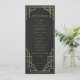 A refined black wedding ceremony program featuring gold Art Deco detailing and a clean, elegant layout. This printed program lists the full order of events for your ceremony in a timeless, structured format that pairs beautifully with celestial and geometric wedding themes. Perfect for couples seeking a sophisticated, cohesive look across their stationery suite. Please note: the gold color is digitally printed, not metallic foil.