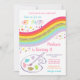 Cette mignonne invitation présente un arc-en-ciel coloré aux accents de parties scintillant faux or.