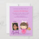 Un invitation mignon et coloré qui est parfait pour cette fête d'anniversaire à thème de la peinture, des arts et de l'artisanat ! L'invitation présente une mignonne petite fille avec un arc de pois blanc et rose et habillée d'un tablier rose. Elle s'accroche à une palette de couleurs et peint en pinceau sur la toile montée sur le chevalet violet. Modifiez l'image de l'échantillon en image de la fille d'anniversaire.