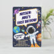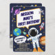 Amusants astronautes de l'espace extra-atmosphérique, astronomie, mignons enfants Invitation d'anniversaire. Prenez le premier anniversaire de votre petit à de nouveaux sommets avec notre invitation à thème de l’espace extra-atmosphérique! Doté d'un arrière - plan bleu vif et d'un thème spatial. Le titre indique "MISSION : Name BIRTHDAY" dans une police ludique et audacieuse. Le sous-titre est une bulle de texte avec un astronaute, qui dit : "Les astronautes, costume-toi !". Le texte du corps comprend une description amusante de la fête et un appel à RSVP. L'aménagement est amusant, simple et fantaisiste. Cette invitation personnalisable vous permet d'ajouter facilement les détails de votre fête (date, heure, emplacement et informations RSVP) afin de vous concentrer sur la planification de la célébration parfaite. Disponible en format numérique ou imprimable, il est idéal pour envoyer des courriels, des textos ou des courriels aux invités. Contactez-moi pour des modifications supplémentaires avant de passer une commande. Merci de visiter notre magasin. Les droits d'auteur explosent dans les modèles de style.