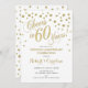 Invitation à la célébration du 60e anniversaire de mariage. Invitation imprimée ou modèle numérique en blanc et or faux. Caractéristiques de la police de caractères et confettis. À 60 ans de mariage ! Parfait pour une célébration élégante de 60 ans de mariage.