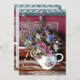 Le devant de cette invitation personnalisée tendance est notre photographie originale de belles fleurs dans une vieille théière. Le nombre d'années est indiqué en blanc. Le verso est la même photo, avec le texte de l'invitation en violet. Une belle invitation à une fête de 70e anniversaire de mariage. Photographie originale de Marcia Socolik. Tous droits réservés © 2015 Alan & Marcia Socolik.