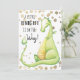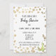 Le thème est médiéval d'une façon si douce :) Ce baby shower invitation le dessin de dragon vert a un dinosaure vert doux / dragon avec un arrière - plan de points d'or magiques.