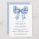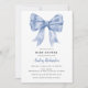 Célébrez dans le style avec notre élégante Blue Bow Baby shower Invitation, parfait pour un charmant thème de Baby shower Coquette. Dotée d'un design d'arc délicat, cette invitation est entièrement personnalisable et facile à commander. Idéal pour donner un ton raffiné et sucré à votre baby shower, cette invitation de Baby shower Coquette de haute qualité laissera une impression durable à vos invités.