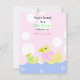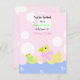 Un arrière - plan doux de rose avec de grands points blancs. Deux petits canards jaunes flottant sur l'eau. Customisez avec toutes les informations de votre baby shower selon vos besoins.