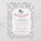 Invitation à un Baby shower élégant Damask & Pram avec un jeu de couleurs rose et gris