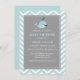 Modern Invitation présente une baleine bleue à moustache sur un arrière - plan de chevron bleu & gris.