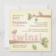 Deux petits oiseaux douces se perchent dans ce décor au milieu de branches fleuries de feuilles et de fleurs roses. Des "jumeaux" roses ! a un effet pointu et des éléments sont ombragés pour un aspect dimensionnel. Le arrière - plan de blanc brossé est ombragé dans les coins pour donner une impression de tissu vintage à l'ensemble. Très douce - et faites savoir à vos invités que deux précieuses petites filles sont en route.